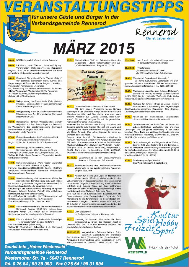 Auf dieser Seite liefern wir Ihnen Termine von Veranstaltungen im Hohen Westerwald auf einen Blick.